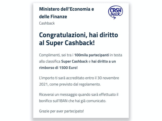 Super Cashback, dopo i controlli sui “furbetti” stanno arrivando i premi da 1500 euro per 100.000 italiani