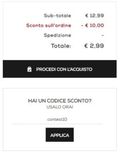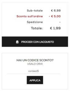 Inserendo infatti nel carrello il codice “contest5” otterrete uno sconto di 5€, mentre con il codice “contest10ne avrete ben 10!