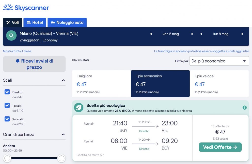 Ecco le date in offerta che ti segnaliamo con relativi voli a/r per Vienna dai seguenti aeroporti d’Italia: