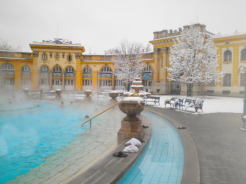 Il parco termale Szechenyi a Budapest durante l’inverno