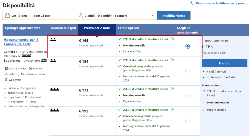 Prezzi e date disponibili