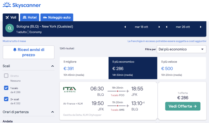 Esempio di offerta su SkyScanner