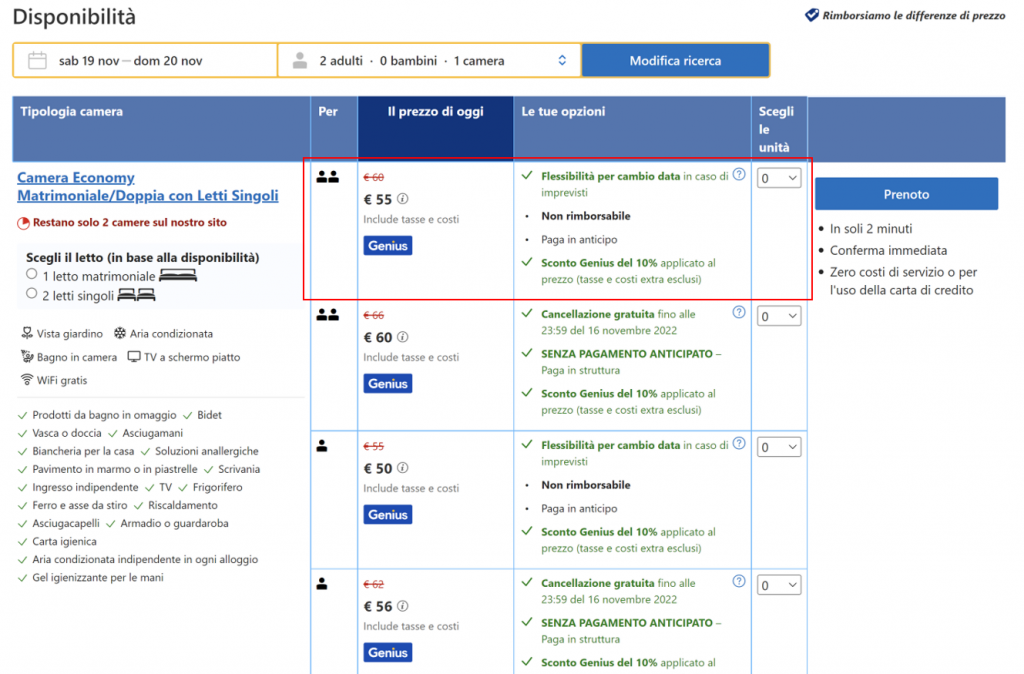 Una qualità/prezzo davvero da urlo, molto rara da trovare in una città del calibro di Firenze. Per questo molte date sono già andate a ruba, ma per fortuna nei mesi di settembre, ottobre e novembre c’è ancora disponibilità!