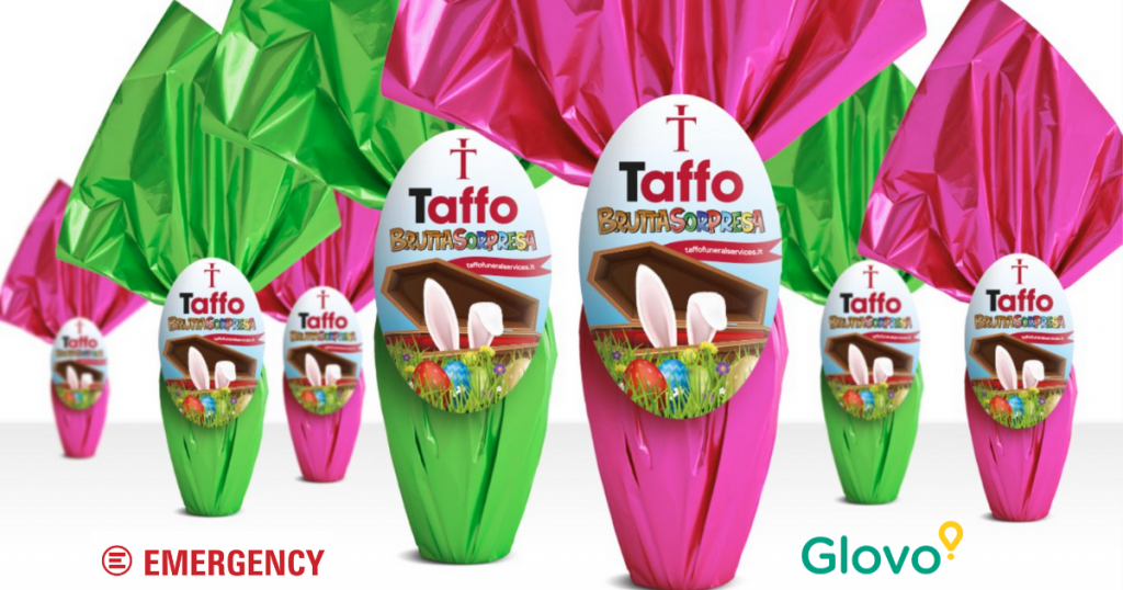 Ma alla fine anche l’uovo di Pasqua più irriverente può nascondere una bella sorpresa, che stavolta però non sta all’interno dell’uovo, ma nella causa che Taffo ha deciso di sostenere vendendo questa linea di uova di Pasqua. Parte del ricavato infatti sarà devoluto ad Emergency, che ormai da più di un mese è in prima linea per l’emergenza umanitaria in Ucraina.