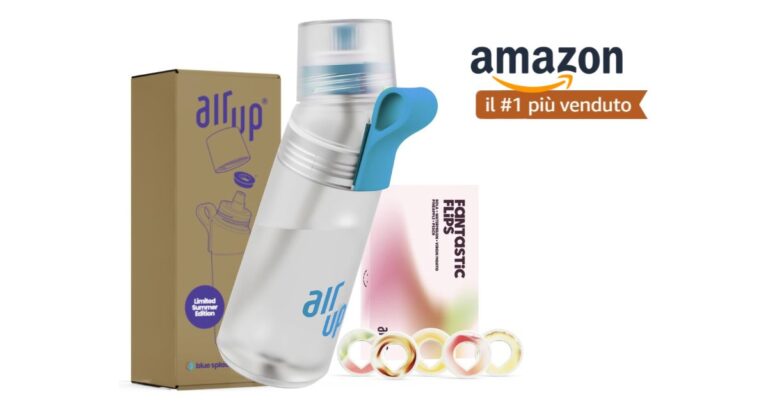 Scopri il Bundle Air Up richiestissimo su Amazon: composto da borraccia da 600ml e baccelli in 5 sapori, ti aiuta nella tua idratazione quotidiana.