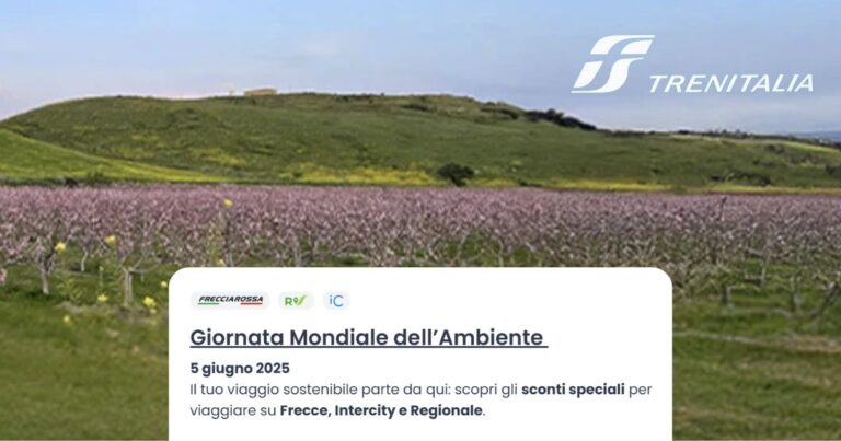 Dal 4 al 6 giugno, Trenitalia festeggia la Giornata Mondiale dell’Ambiente con sconti speciali fino al 50% sulle offerte Super Economy, FrecciaDAYS e Italia in Tour 5.