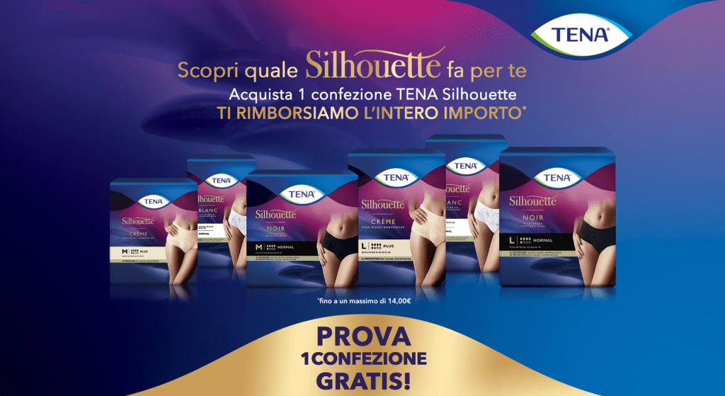 Prova gratis un prodotto Tena Silhouette grazie alla promo “Silhouette per te”! Acquista subito una mutandina assorbente e richiedi il rimborso completo!