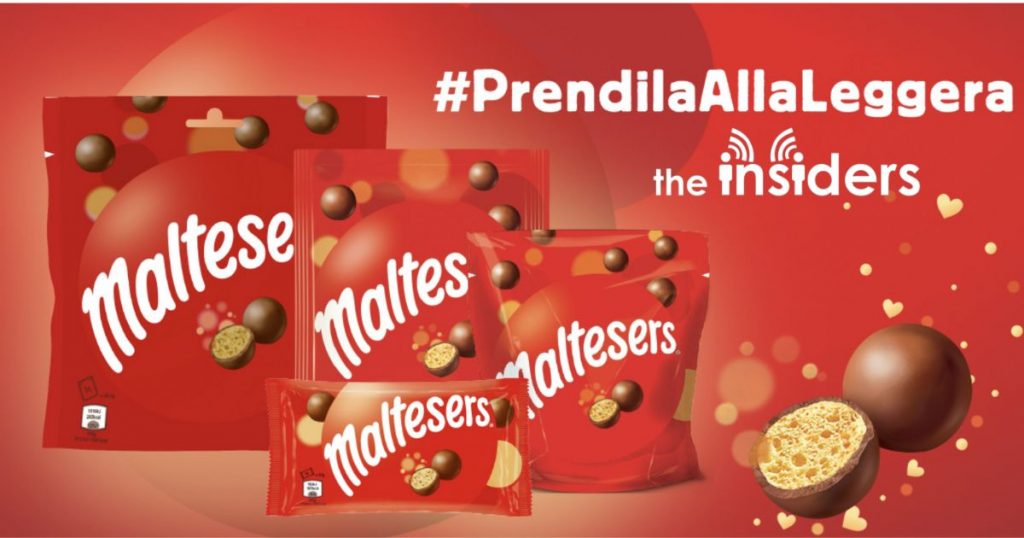 • Condividendo le tue foto sui social: non dimenticare di aggiungere gli hashtag #PrendilaAllaLeggera#maltesersinsiders, #theinsidersitalia #insiderstories e i tag alle pagine social @maltesersita e @theinsidersitalia!