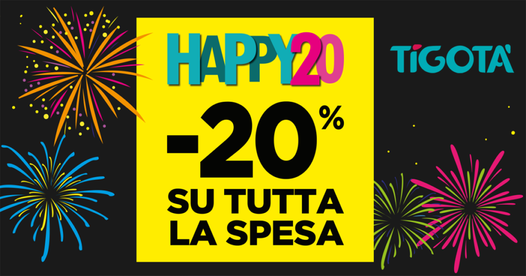 Tigotà Happy 20: inizia l’anno con uno sconto del 20% su tutta la spesa!