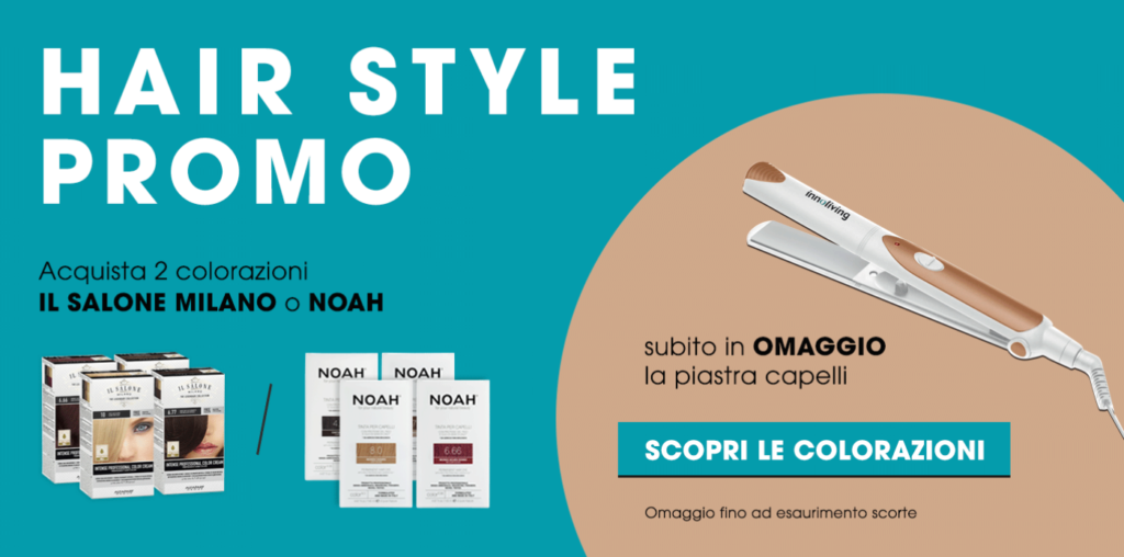 I prodotti promozionati sono tutti i coloranti dei marchi “Il Salone Milano” e “Noah”.