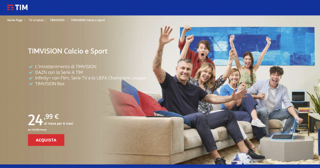 TIMVISION Calcio e Sport: attivalo ora e paghi solo 24,99€ al mese per 6 mesi!