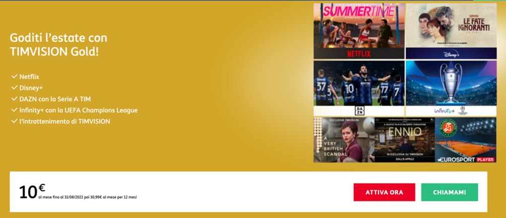 TIM ha definito, inoltre, un’offerta ancora più amplia con l’abbonamento TIMVision Gold.