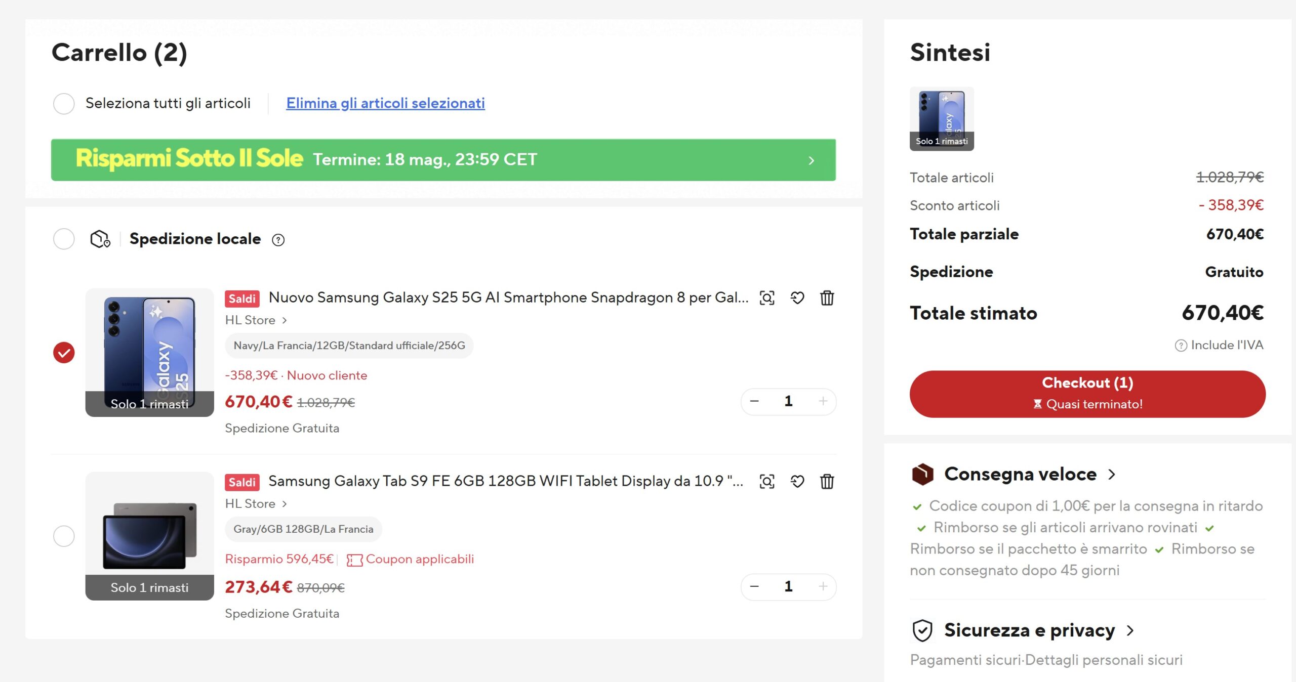 Procedi dunque al checkout e completa l’acquisto per ricevere il pacco quanto prima.