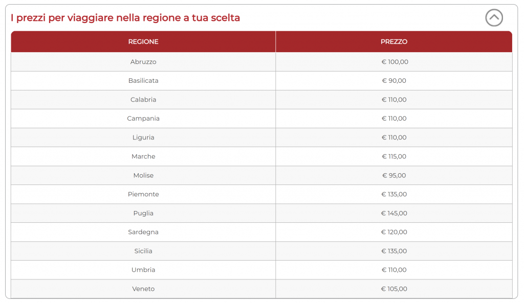 La procedura da seguire è semplice e veloce: dopo esserti collegato al sito web ufficiale dedicato alla promo Trenitalia, clicca su “Acquista” e seleziona la regione in cui vuoi viaggiare.