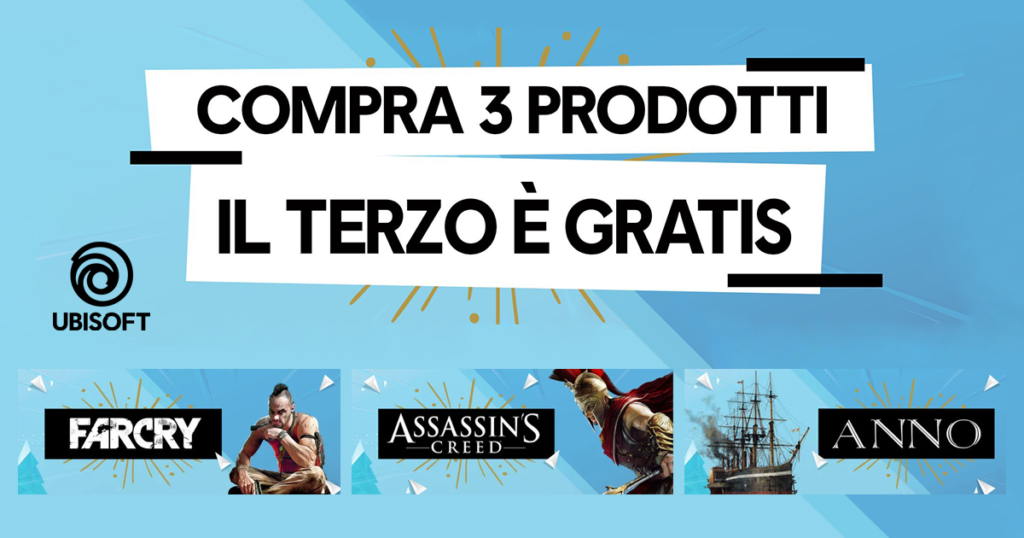 Ubisoft 3×2: compra 3 prodotti, il meno caro è GRATIS!
