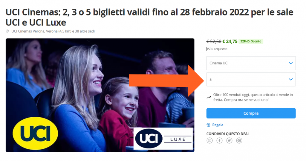 Tramite l’offerta su Groupon, i biglietti dell’UCI Cinema sono in offerta con sconti dal 48 al 52%: a seconda di quanti biglietti acquisti infatti puoi pagare da 5,45€ a biglietto, fino a 4,95€. In media 5 euro a biglietto!