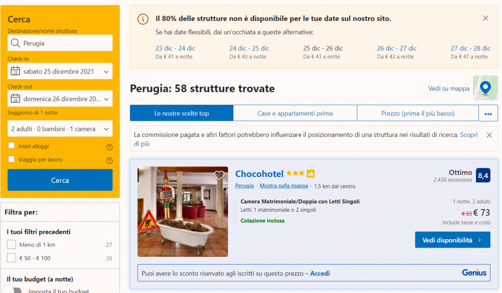 Di seguito ti suggeriamo alcune date per soggiornare al Chocohotel di Perugia al miglior prezzo possibile!