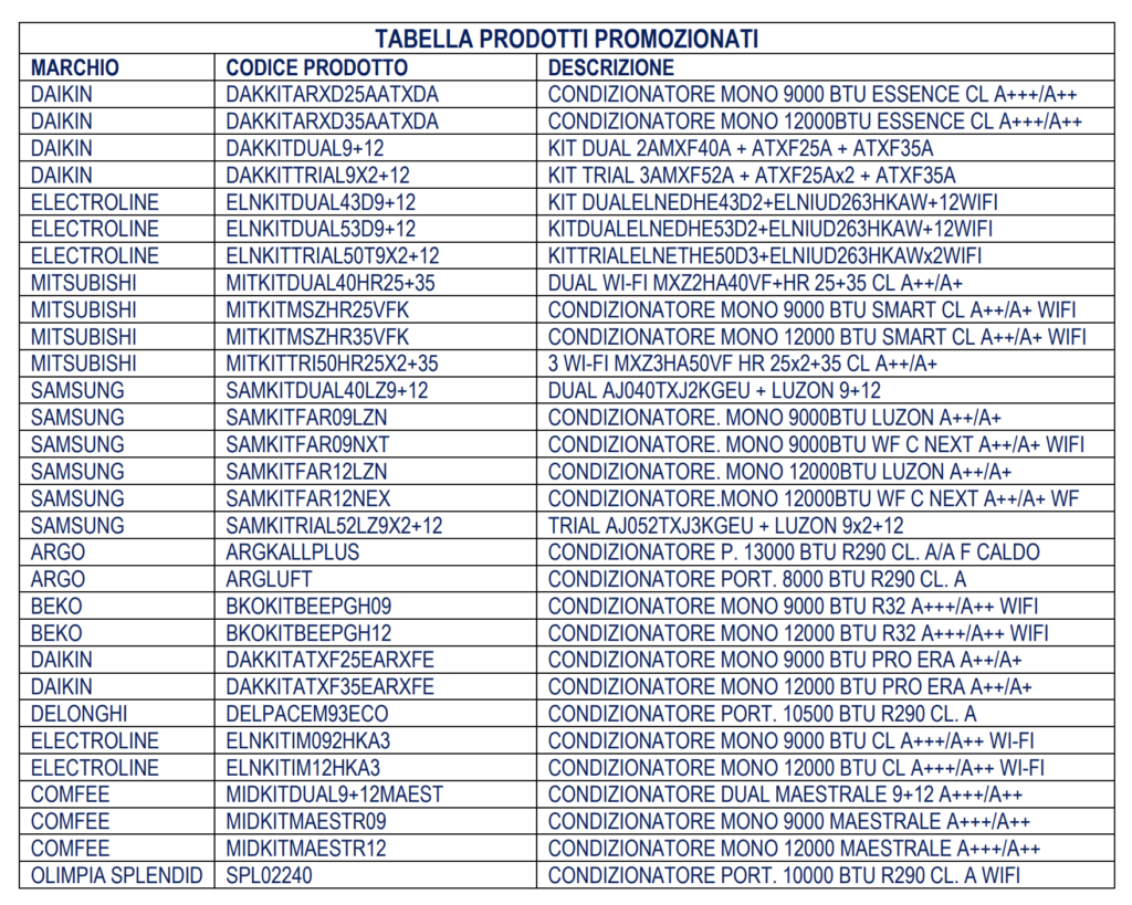 Partecipare è facilissimo: basta che, entro il 20 luglio 2023, vai sul sito ufficiale di Unieuro e aggiungi al carrello almeno un condizionatore tra quelli in promozione (riportati nella tabella sottostante).
