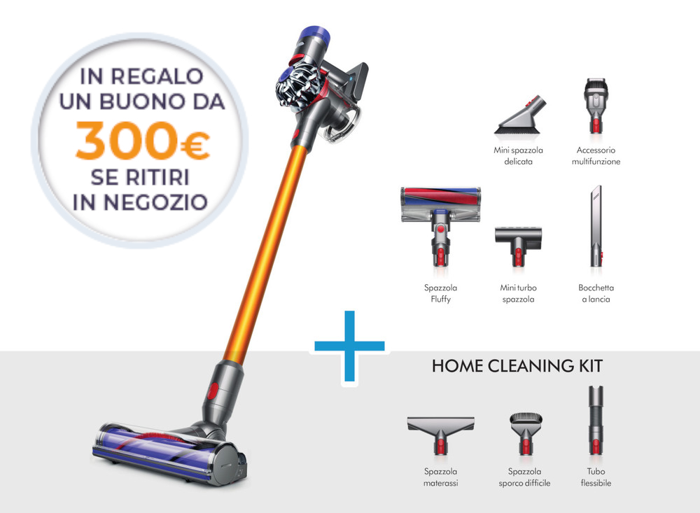 Acquista un aspirapolvere Dyson V8 Absolute con ritiro in negozio da Unieuro e ricevi subito un buono spesa da 300€!