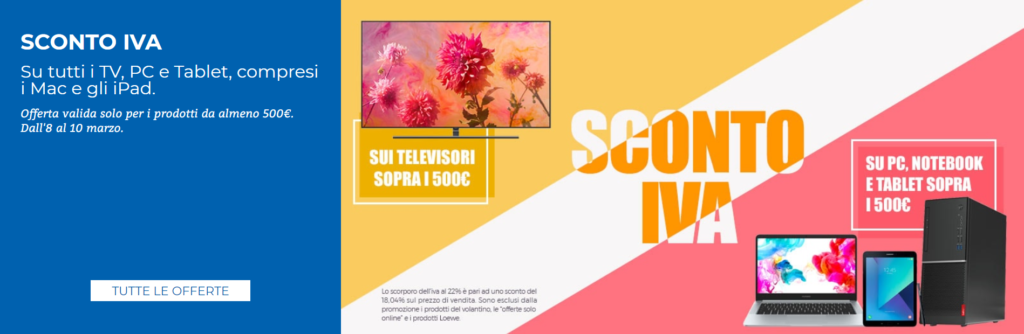 Dunque, la promo è valida solo per PC, Notebook, Tablet e TV di costo superiore a 500€.