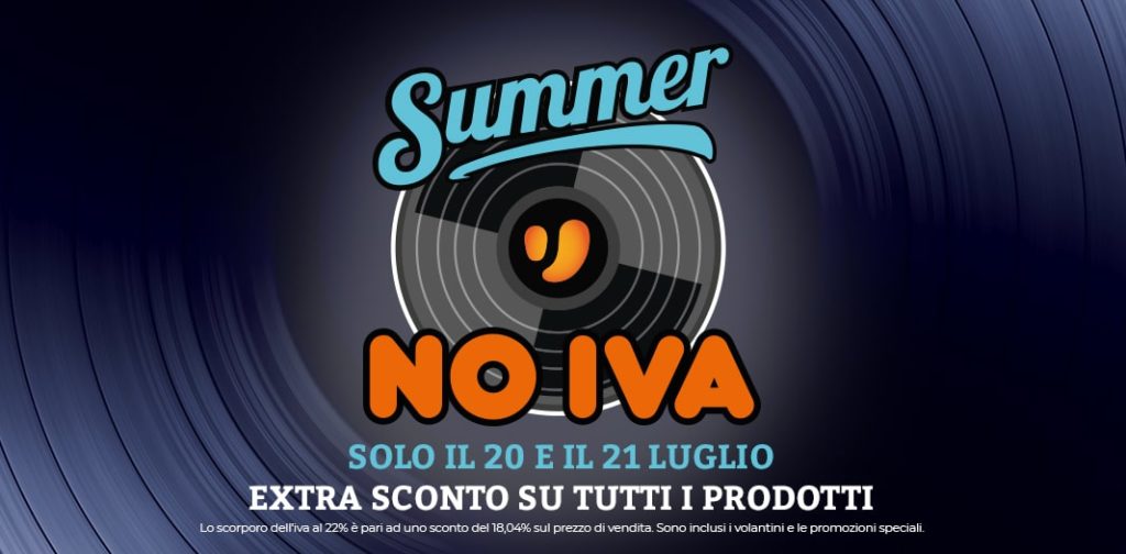 Solo sabato 20 e domenica 21 luglio potrai approfittare degli extra sconti Unieuro con “Summer NO IVA 2019”, pari ad un risparmio del 18,04% su tutto il catalogo online!