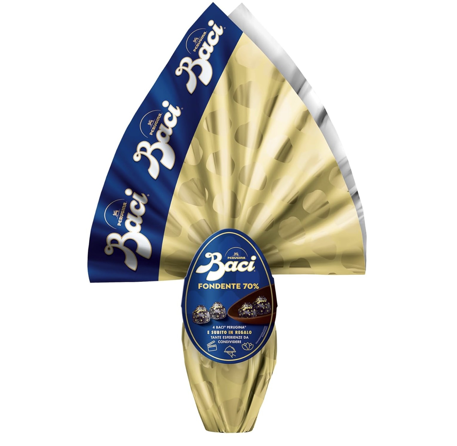 BACI PERUGINA Uovo di Pasqua 2025 Cioccolato Fondente Extra 70% con Sorpresa e 4 Cioccolatini 265g