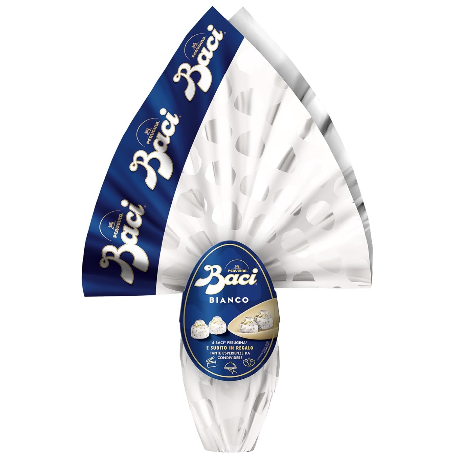BACI PERUGINA Uovo di Pasqua 2025 Cioccolato Bianco con Sorpresa e 4 Cioccolatini 265g