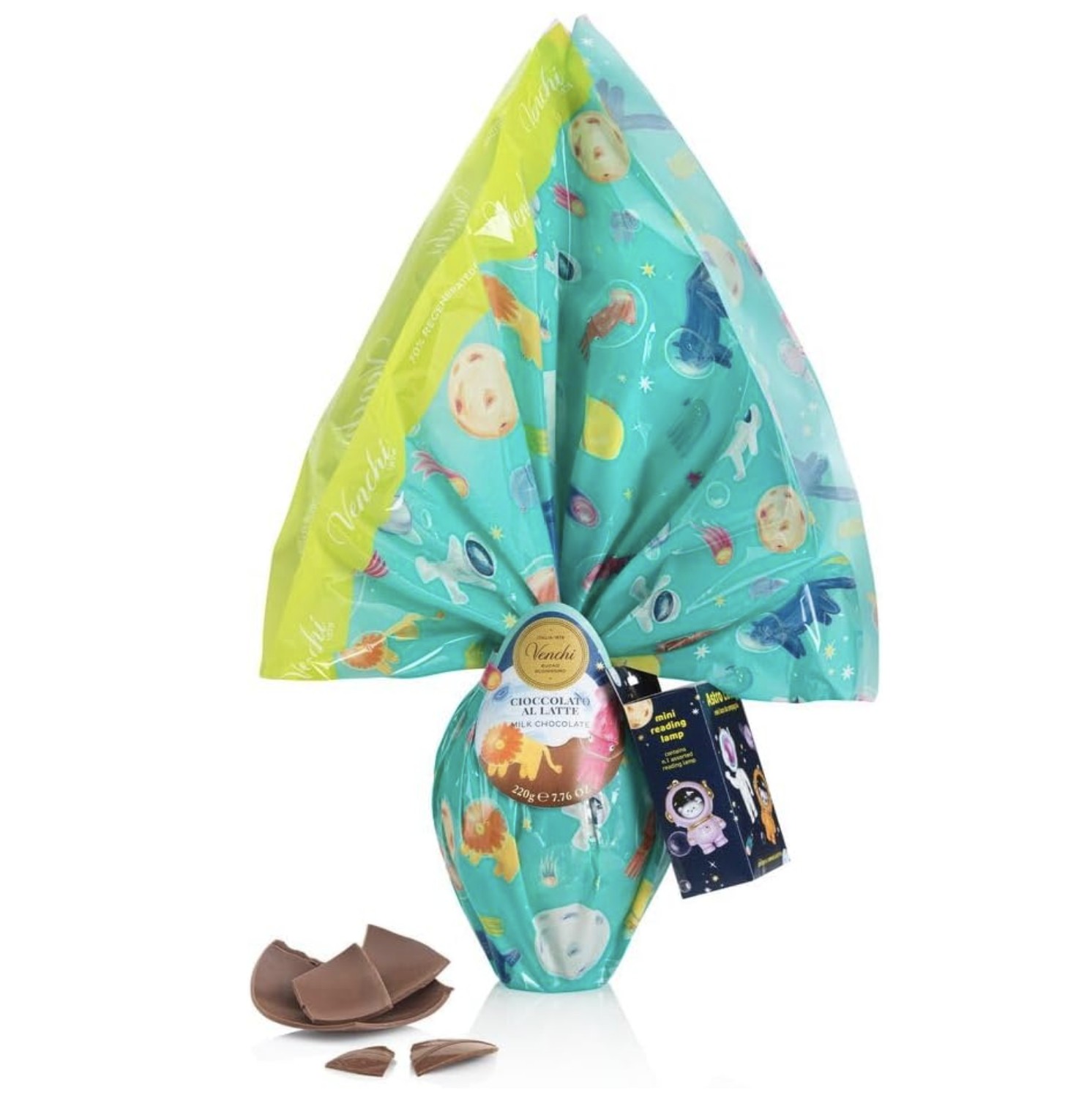 Venchi – Uovo di Cioccolato Azzurro, Gusto Cioccolato al Latte, con 2 Sorprese per Bambini, Senza Glutine, 220 gr