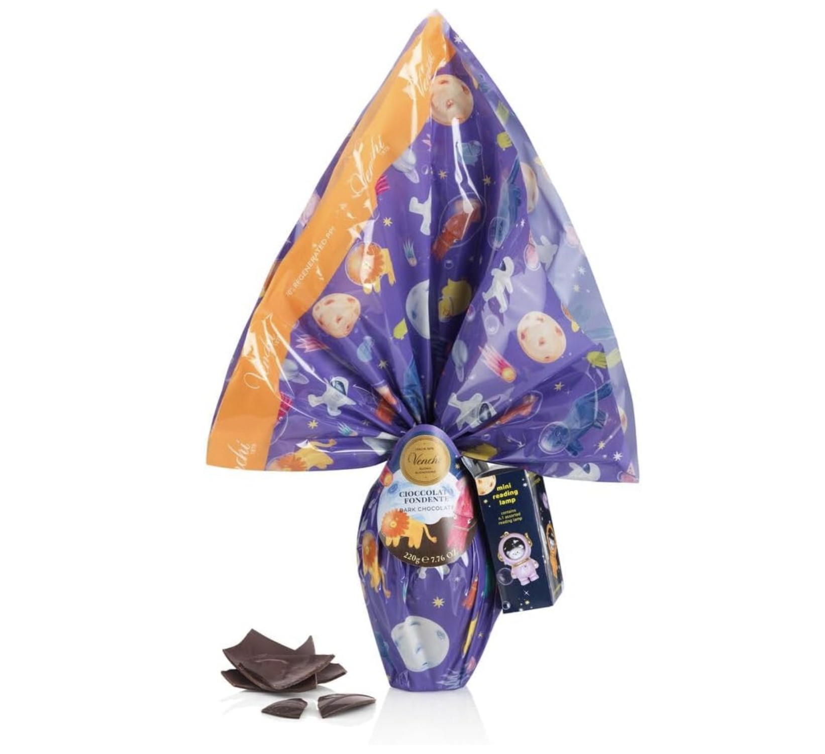 Venchi – Uovo di Cioccolato Viola, Gusto Cioccolato Fondente 60%, con 2 Sorprese per Bambini, Senza Glutine, Vegano, 220 gr