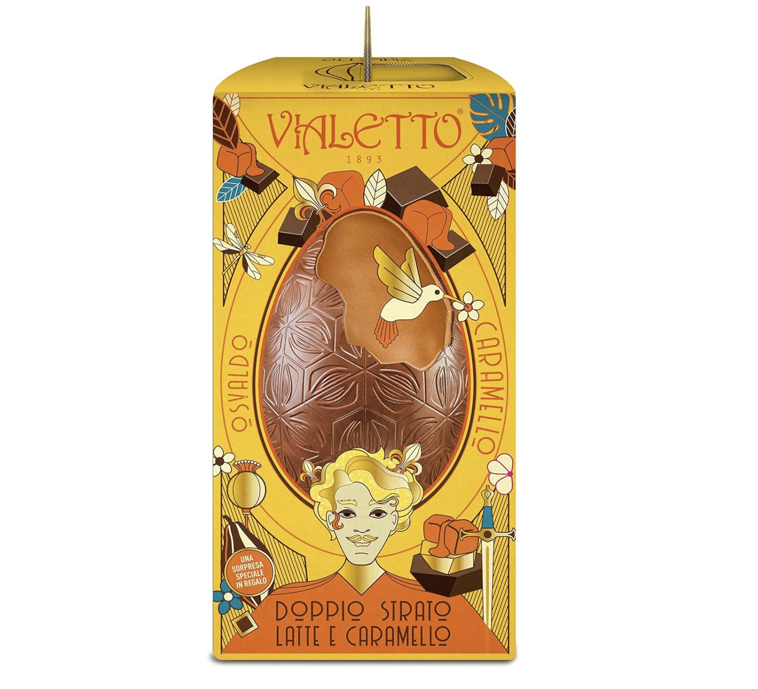 Vialetto Uovo di Cioccolato Osvaldo | Cioccolato al Latte e Caramello | Contiene una Sorpresa 100% Made in Italy, Confezione in Carta Certificata FSC | Uovo di Pasqua Doppio Strato da 320 Grammi