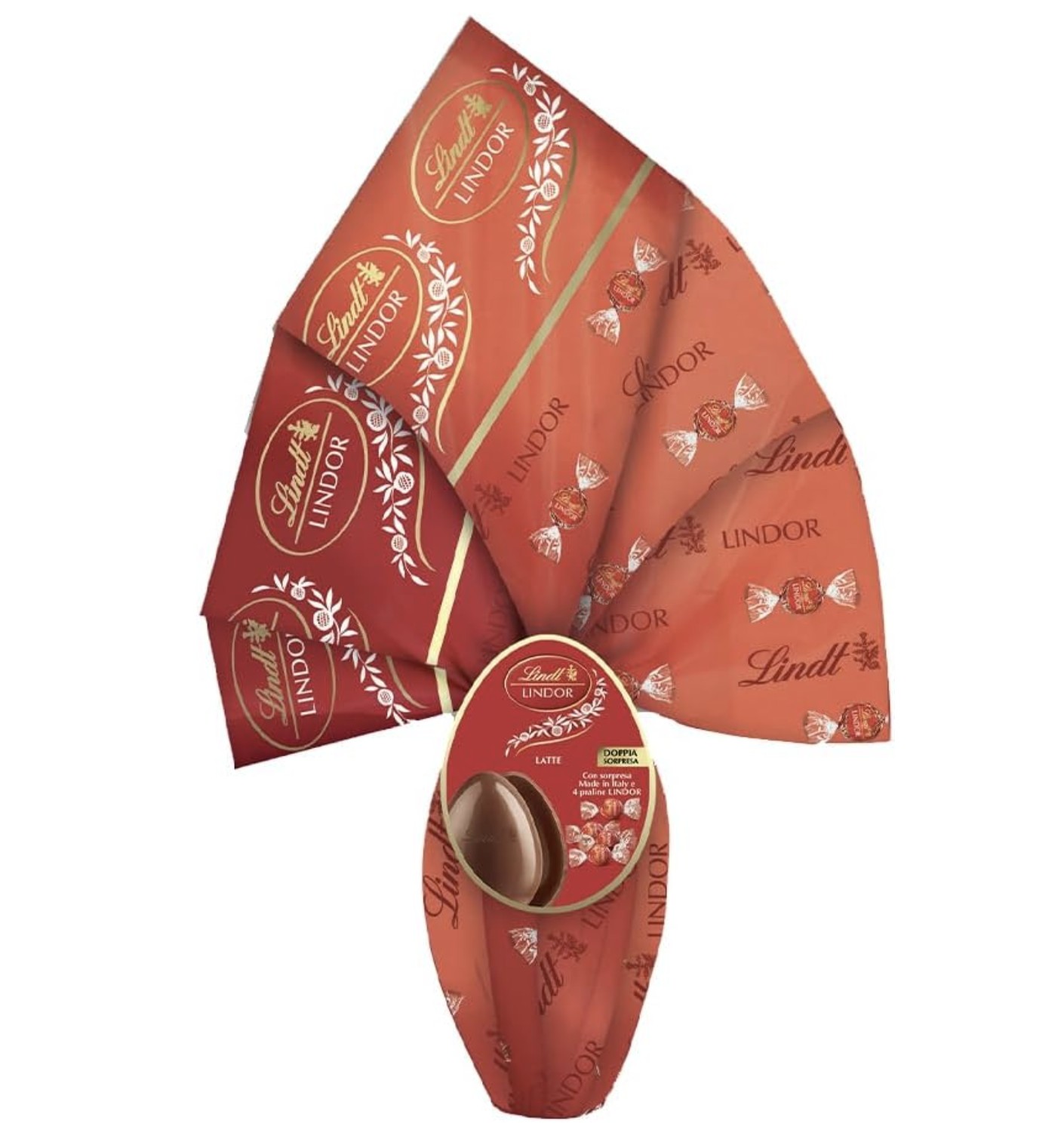 Lindt LINDOR Uova di Pasqua Cioccolato al Latte, Uovo al Cioccolato al Latte con Praline LINDOR e Sorpresa, 320g