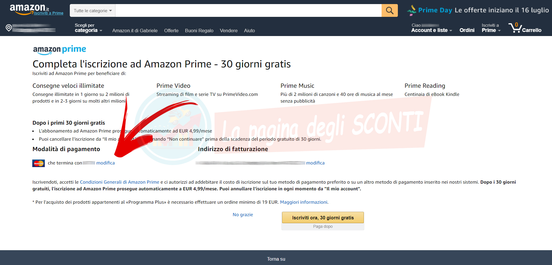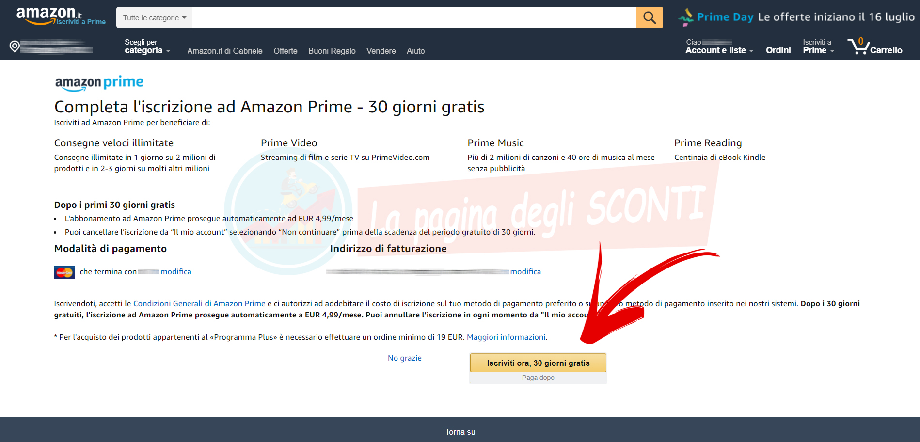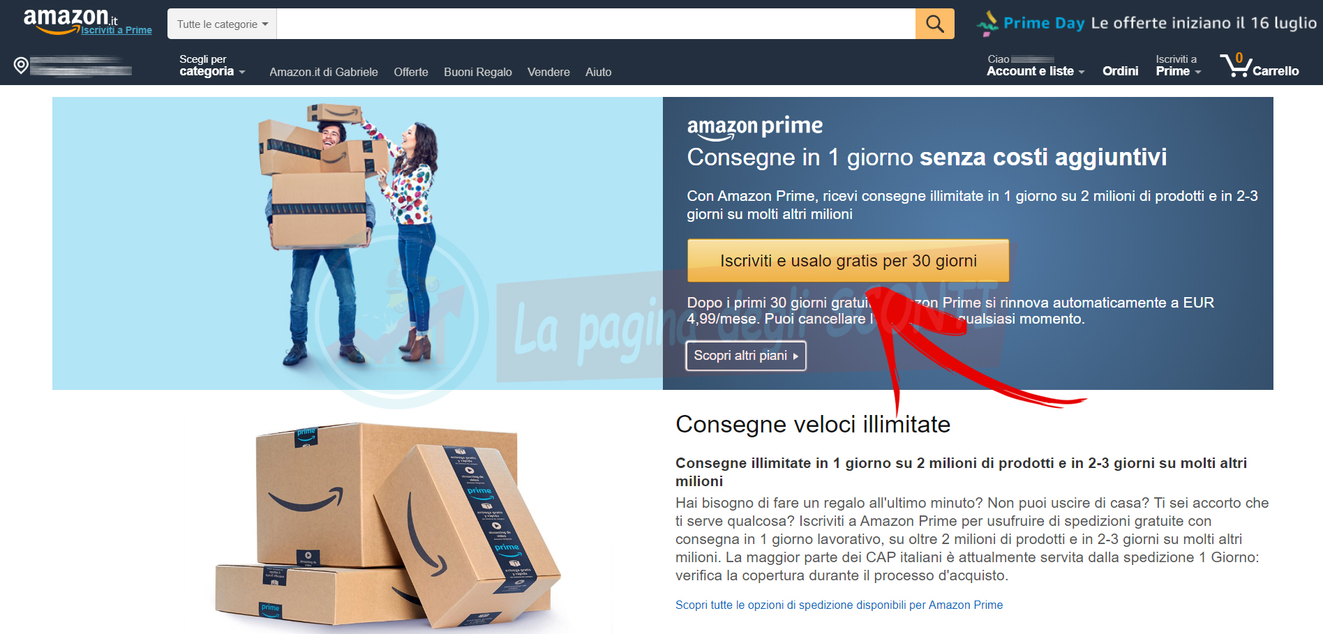 Passiamo ora alla procedura da effettuare per attivare la prova gratuita di 30 giorni del servizio Prime sul tuo account, da PC: