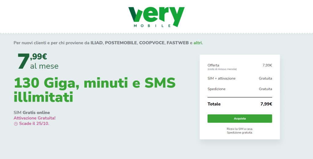 L’offerta è attivabile fino al 25 ottobre 2021, salvo eventuali proroghe.