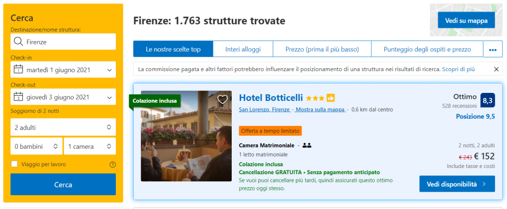 Come tante altre soluzioni su Booking, anche per l’Hotel Botticelli di Firenze è presente la cancellazione gratuita.