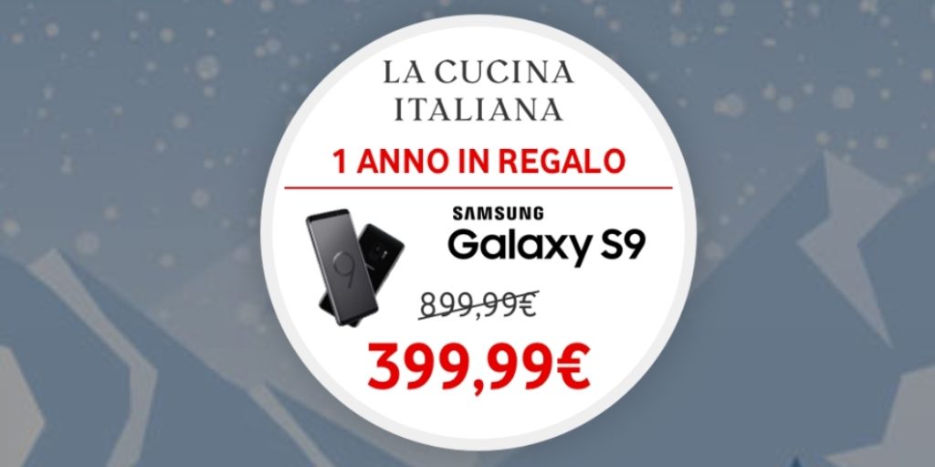 Il Vodafone Happy Friday di oggi 25 Gennaio 2019, propone il Samsung Galaxy S9 a 399,99€, un anno di abbonamento a “La Cucina Italiana” e dei buoni Just EAT!
