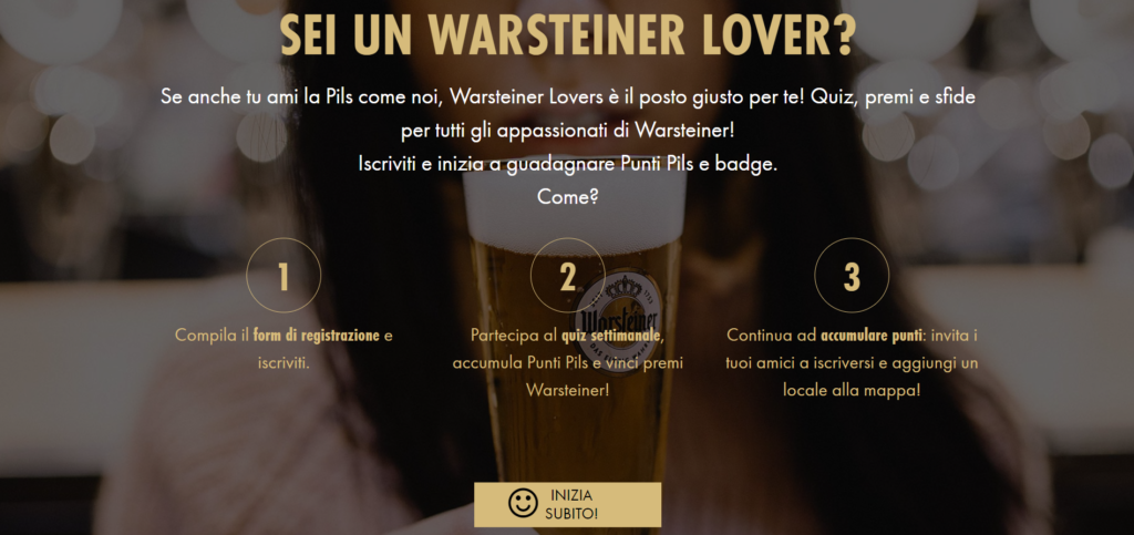 • invitando un locale che vende Warsteiner ad iscriversi alla piattaforma (7.000 punti per locale)