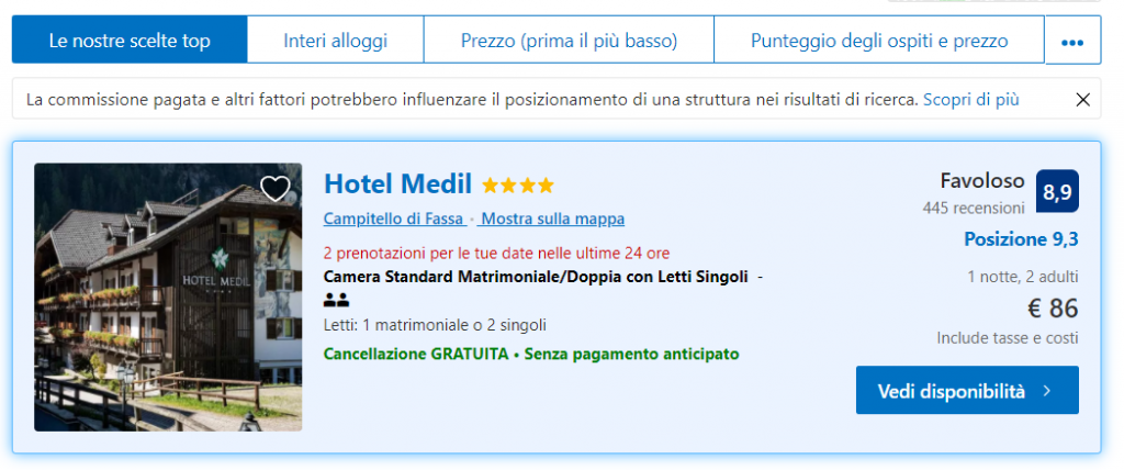 L’Hotel ha prezzi ultra competitivi per un 4 stelle, soprattutto per i weekend di maggio e fino a fine giugno. Per alcune date la cancellazione è gratuita, mentre per altre, al prezzo più basso non è più garantita la cancellazione gratuita.