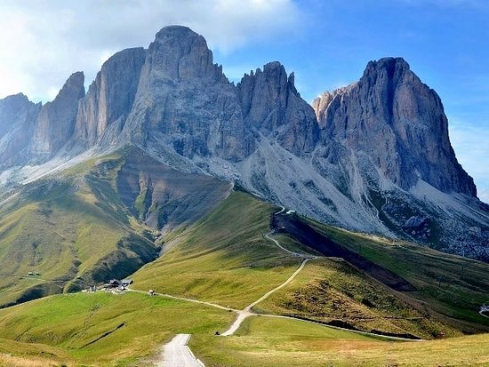 Vista sul Sassolungo: dall’impianto di risalita da Campitello parte un percorso ad anello adatto a tutti
