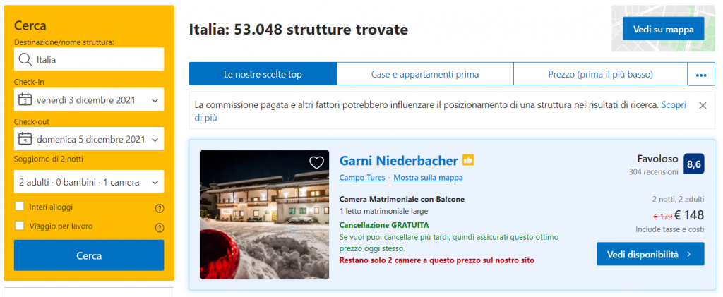 L’Hotel è anche in offerta vacanza su Booking, a soli 74€ per due notti in camera matrimoniale con balcone anziché 89,5€!